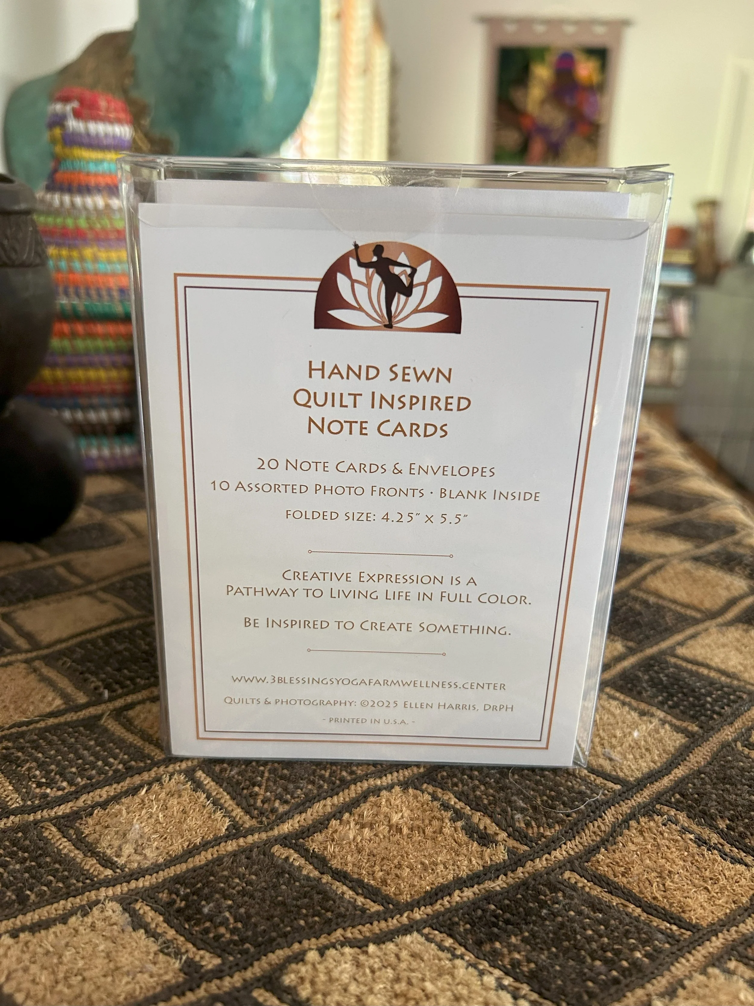 Welcome to our gallery of hand-sewn art quilts and featured gifts! From intricately crafted quilts to beautifully designed note cards, our collection celebrates artistry and creativity. Whether you're searching for a unique gift or a special piece to brighten your space, you'll find charm and inspiration in every item.